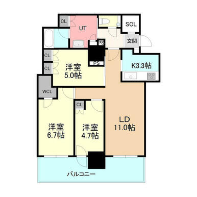 | 間取り | 3LDK(LD11 K3.3 洋6.7 洋5 洋4.7) | 主要採光面 | 南 |