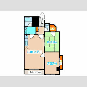 2LDK(LDK14 x 洋8 x 和6) |